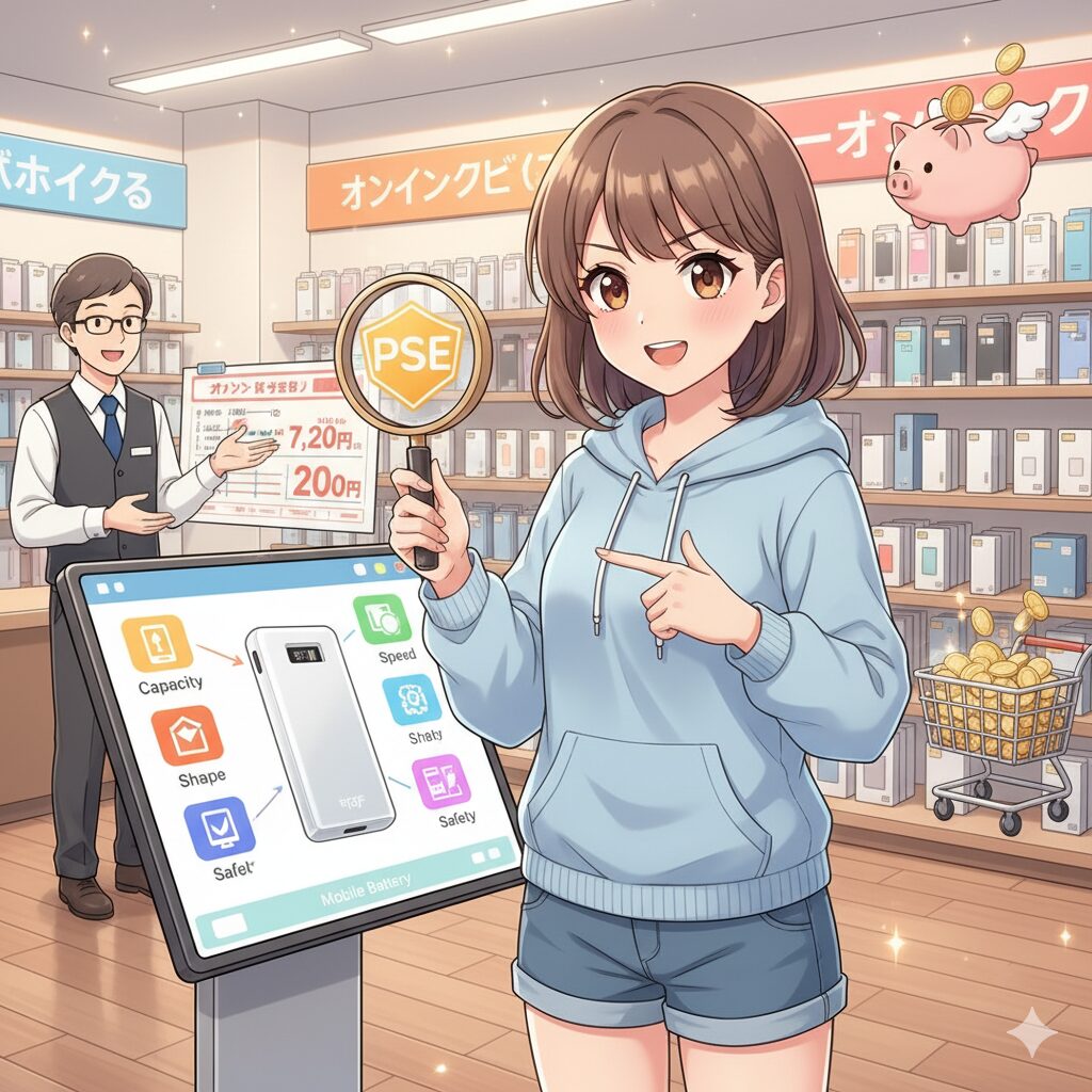 日本国内で販売されるモバイルバッテリーは、電気用品安全法で定められた技術基準に適合していることを示す**「PSEマーク」**の表示が義務付けられています。このマークがない製品は、安全性が保証されておらず非常に危険です。特にネット通販で海外製の安価な製品を購入する際は、必ずPSEマークの有無を確認してください。
