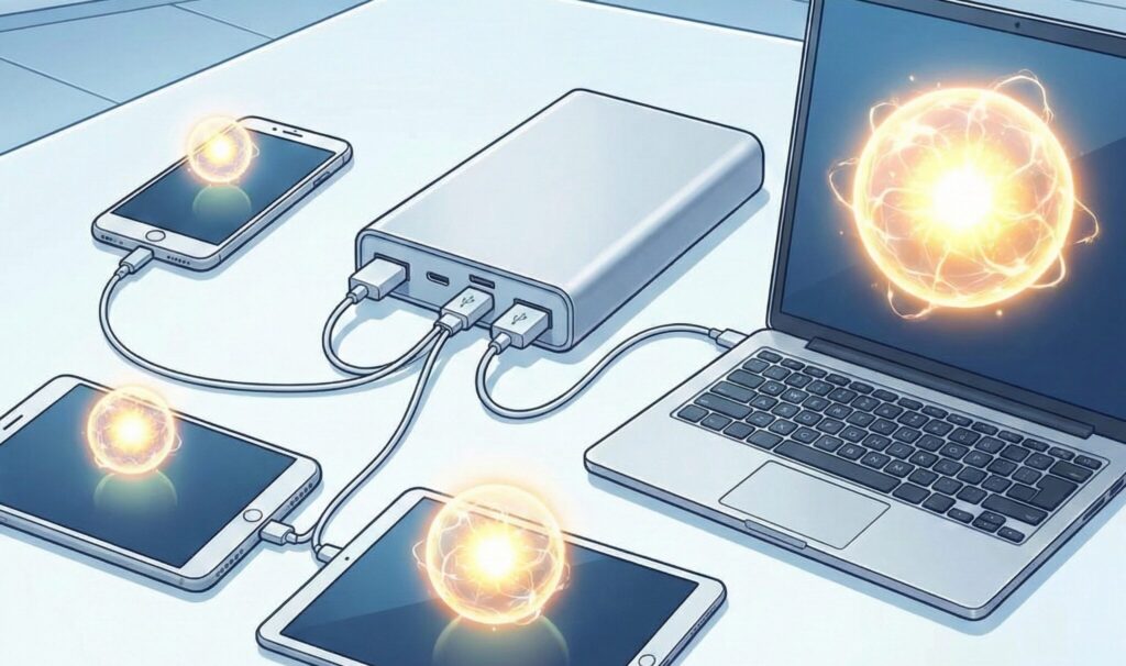 本記事では、モバイルバッテリーのスペック表に記載されている数値の意味や、デバイスごとの最適な出力、さらには飛行機への持ち込みに関するルールまで、ガジェットの知識がない方でも分かりやすく詳細に解説していきます。